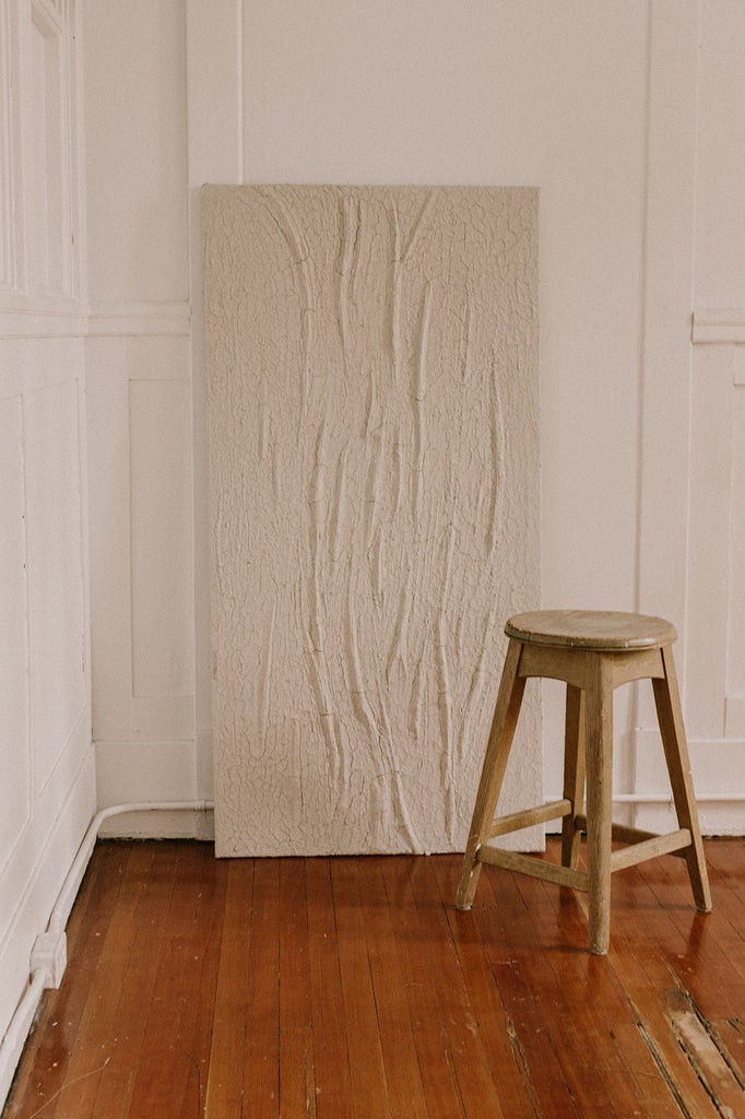 Material: unfired clay plaster recipe: reclaim clay mix, play sand and ground hay fiber.