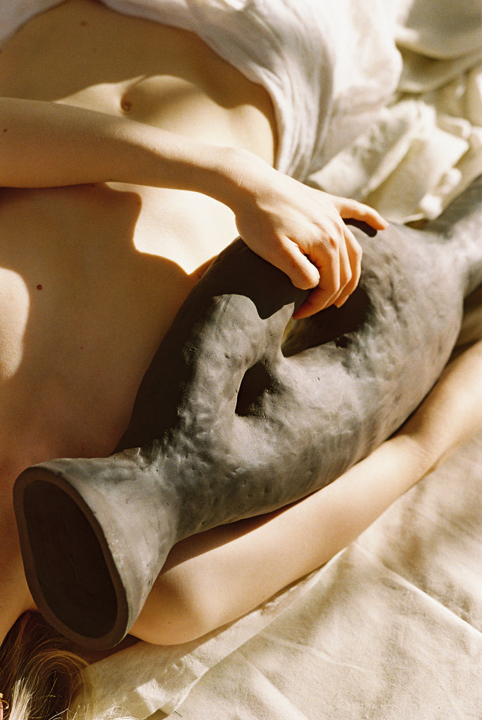 From the Holding & Held analog photo series captured by Jo Concetta. A reclamation of freedom, expression, femininity, and community through abstracted ceramic forms coalescing with skin and curves.